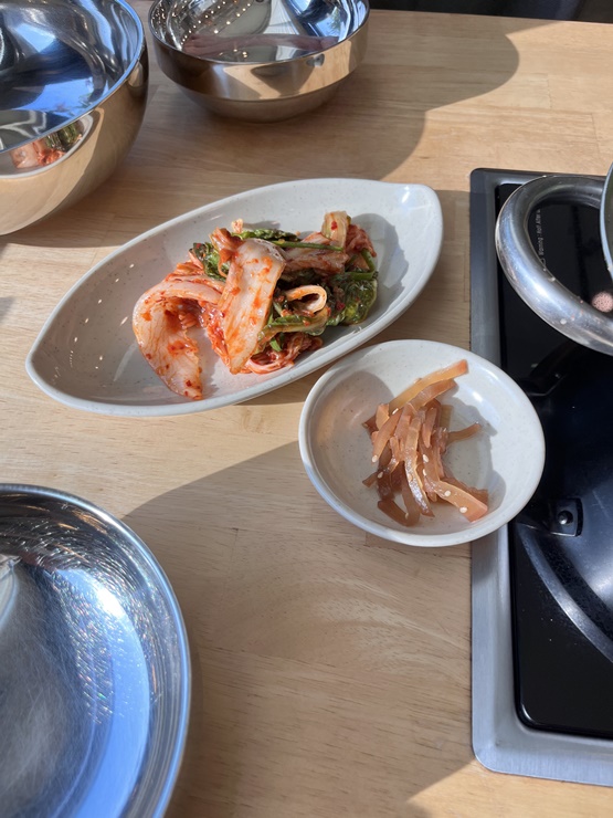 우리는 빨간 육수를 선택했고 바로 상이 차려졌다.