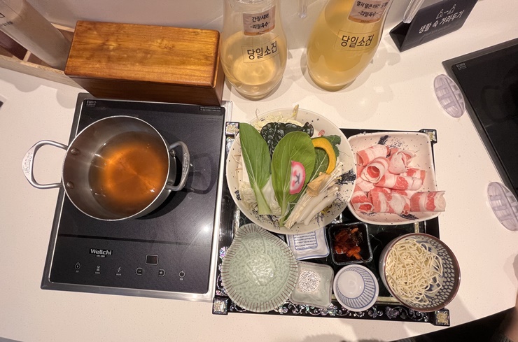 간장샤브 육수와 멸치샤브 육수는 다르니 꼭 잘 보고 리필하자 :)