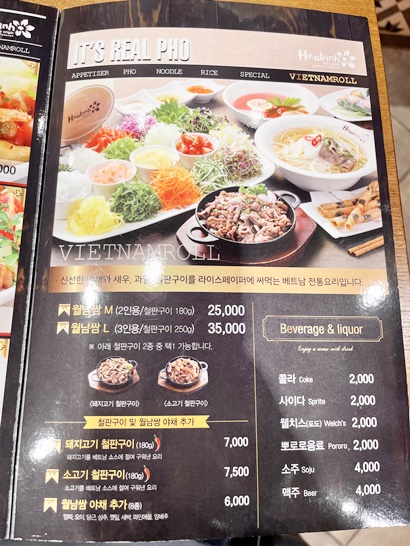 월남쌈도 메뉴에 있다.