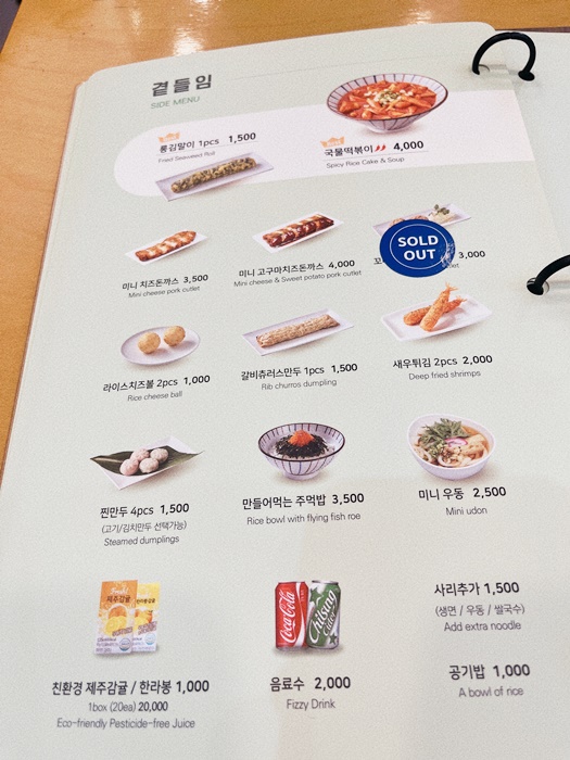 사이드 메뉴까지 준비되어 있는