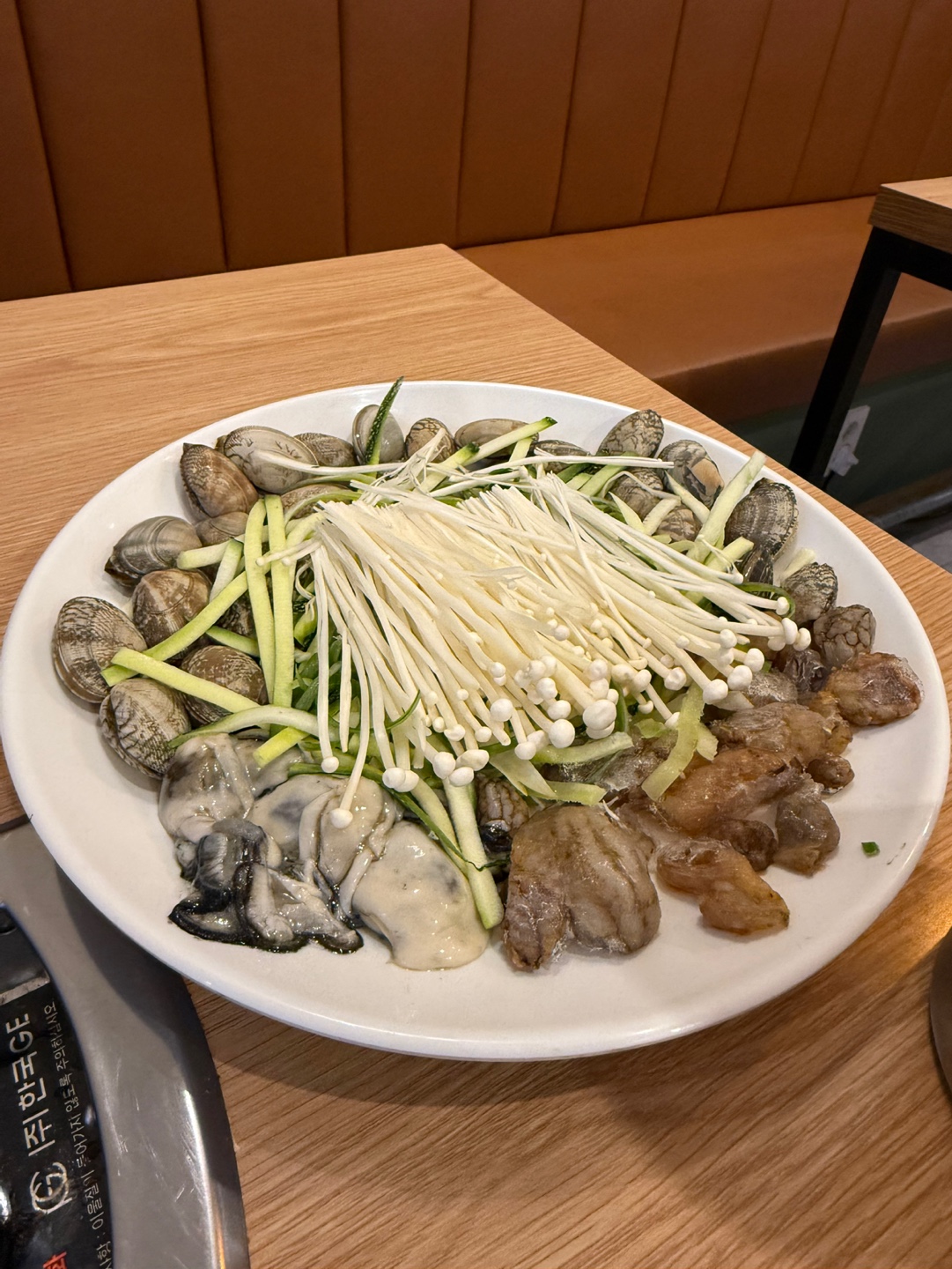 바지락, 미더덕, 굴, 호박, 버섯 등 푸짐하게 준비해 주셨다.