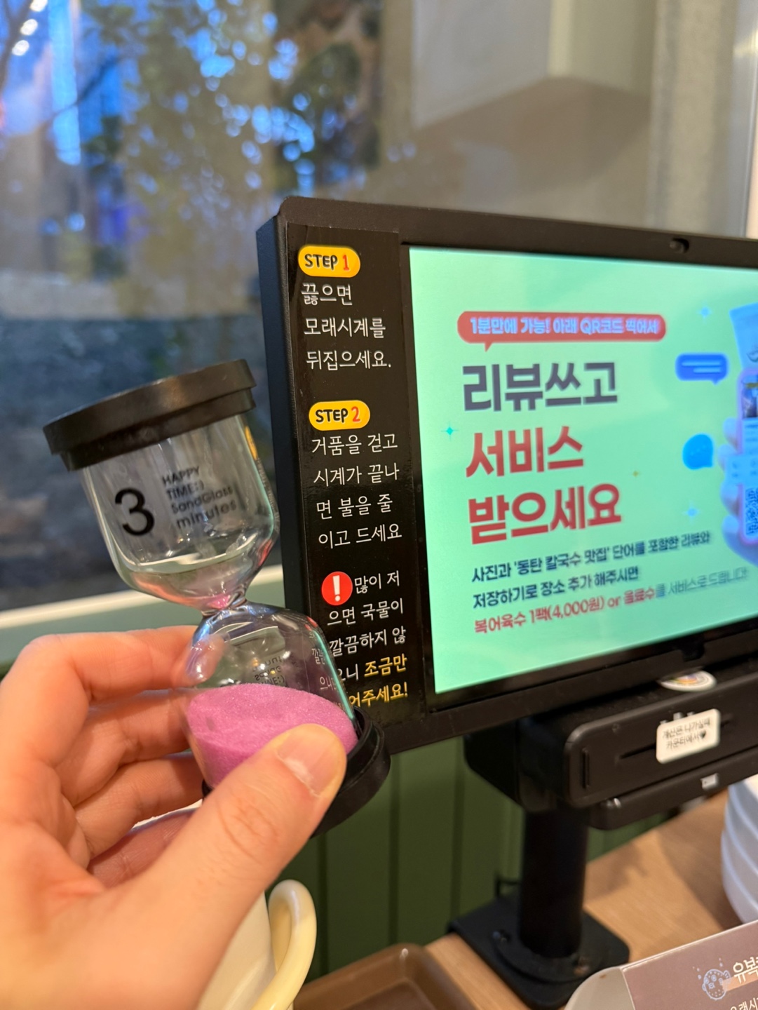 모래시계를 뒤집고 끝나기를 기다리는데 그 사이 나온 쭈꾸미해물부추전