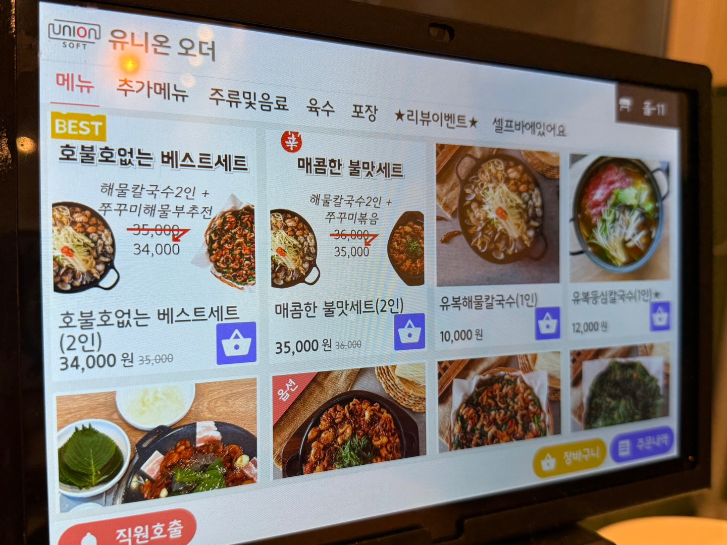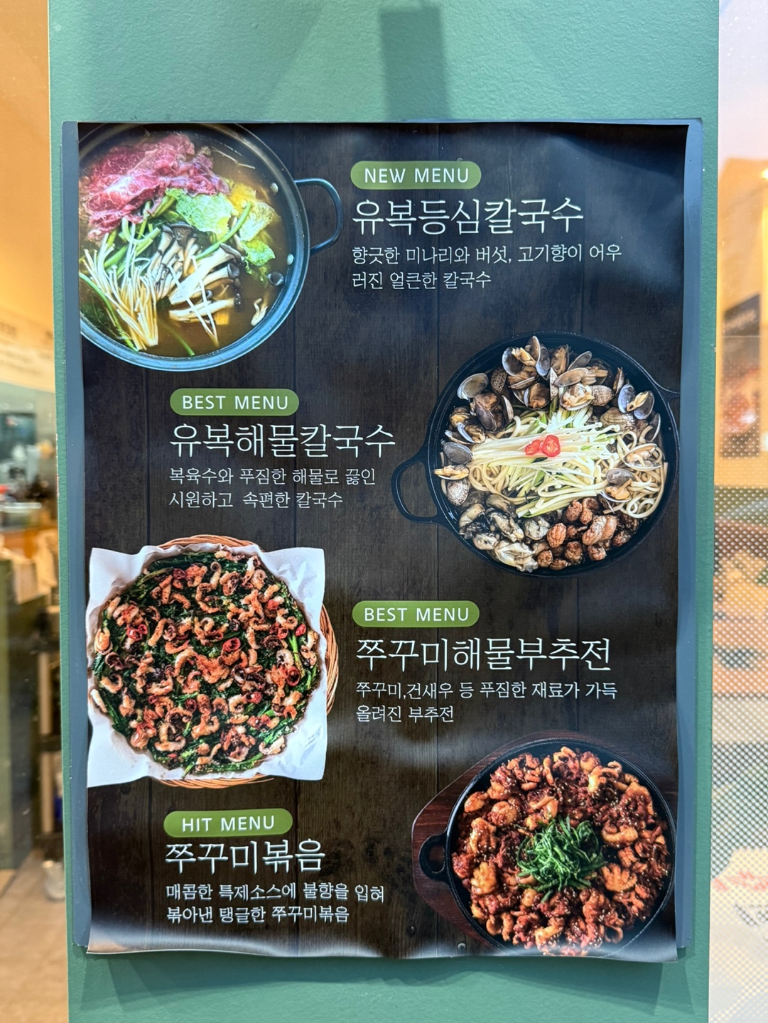 우리는 고민하다 유복해물칼국수 + 쭈꾸비해물부추전을 주문하기로 결정하고 들어갔다.